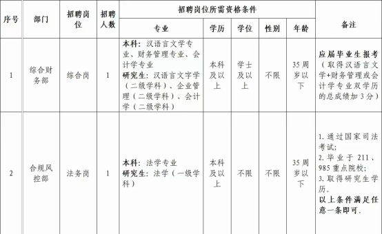 按照《歙县中小企业融资担保有限公司招聘公告》要求,本次拟招聘的综合岗和法务岗两个岗位符合条件的报名人数未达到开考比例的规定,现取消综合岗和法务岗两个岗位招聘计划。